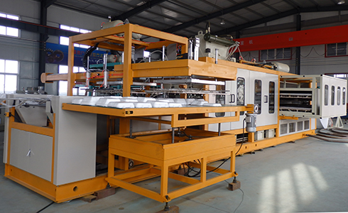 本公司研制開(kāi)發(fā)的自動(dòng)成型裁斷一體機(jī)是一種全能型的熱成型裁斷機(jī)組,以真空成型為主,兼壓空成型、模壓成型及綜合成型,可加工多種熱成型塑料片材。機(jī)組采用全電腦PLC控制,具有結(jié)構(gòu)先進(jìn),性能穩(wěn)定,易操作,產(chǎn)量高,成型面積大,自動(dòng)化程度高等特點(diǎn)。本機(jī)主要用于成型PSP材料,用于食品餐盒、托盤、碗、杯等各式包裝制品。本設(shè)備的最大優(yōu)點(diǎn)是集成型裁斷一體。生產(chǎn)出的成品直接堆垛收集。本設(shè)備在生產(chǎn)過(guò)程中除了節(jié)能降耗等優(yōu)點(diǎn)外,還大大節(jié)省了工作面積、生產(chǎn)時(shí)間和勞動(dòng)力的支出。